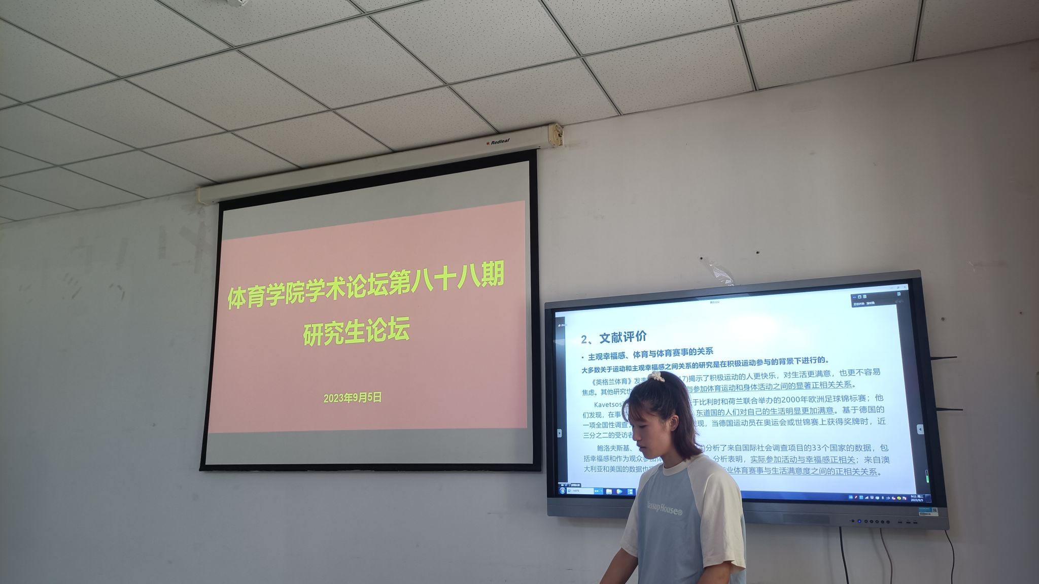 会议室举办。本次论坛由2022级体育产业管理专业硕士研究生潘宏雯和2023级体育产业管理专业硕士研究生席壮伟两位同学进行文献精讲。2022级体育产业管理专业硕士研究生吴晓俊、王聪聪两位同学做了文献速递,2021级体育产业管理专业硕士研究生武涌静同学分享了自己的专业实习经验。全院研究生与部分教师通过线上与线下相结合的方式积极参与研讨,途游斗地主