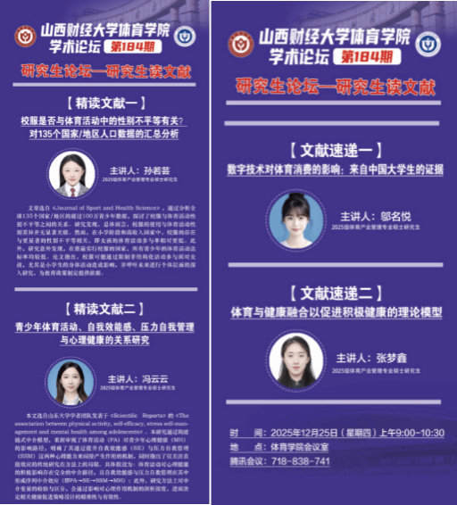 会议室举办。本期论坛聚焦青少年体育健康、性别平等、数字消费等前沿议题,由2025级研究生孙若芸、冯云云进行文献精讲,2025级研究生邬名悦、张梦鑫进行文献速递。途游斗地主