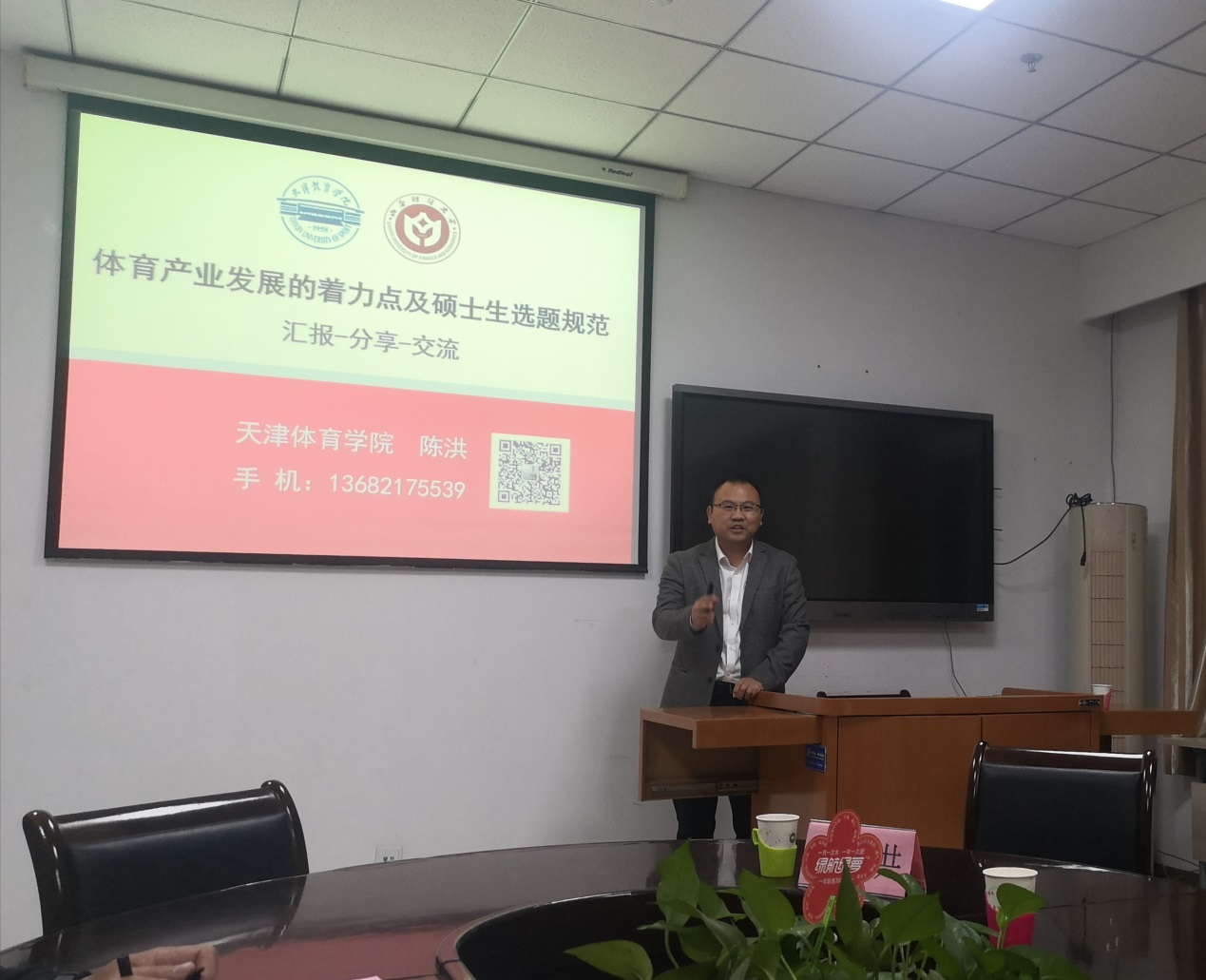 10月17-18日,天津途游斗地主 体育经济与管理途游斗地主 副院长陈洪(主持工作),副教授,博士,受邀带领团队一行7人来途游斗地主下载 进行专业学科建设交流,并在途游斗地主下载 会议室向途游斗地主下载 全体硕导和研究生作专题讲座。
