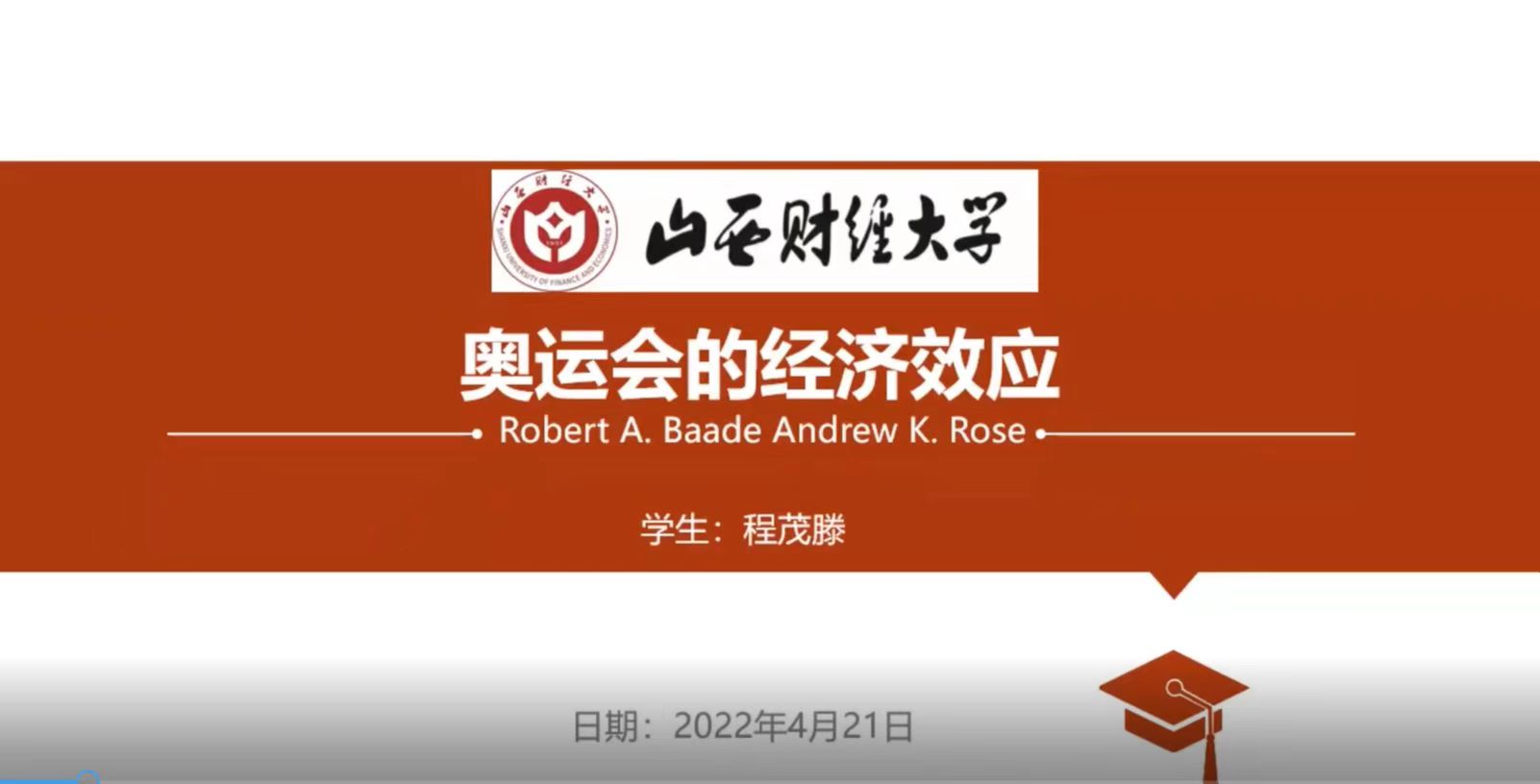 本次论坛由2020级硕士研究生程茂滕和2021级硕士研究生丁亦龙进行文献精讲。第一讲,程茂滕的主题是“奥运会的经济效应”,主讲文章为美国森林湖途游斗地主