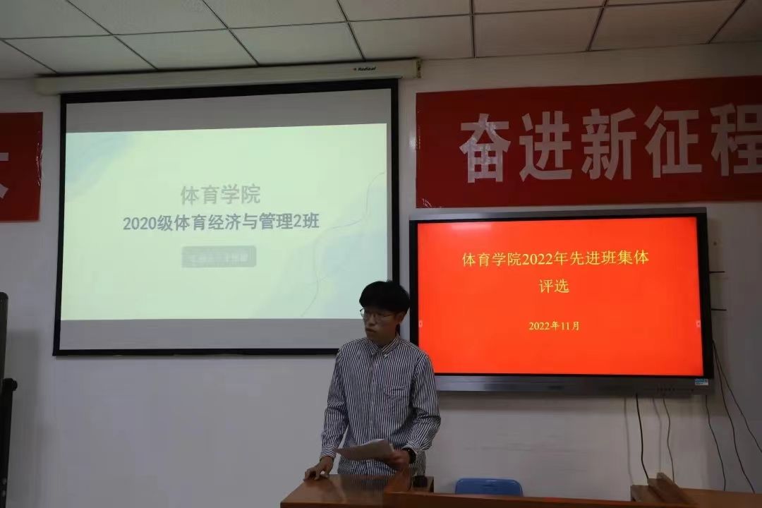 随后是先进班集体的评选活动,20级的两位班长依次上台进行宣讲,演讲过程中充分展现了班集体的精神风貌和班集体成员的青春活力。由于时间原因,21级的两位班长经过线上会议完成了自己班级的风采展示。经投票选出先进班集体为2020级二班。