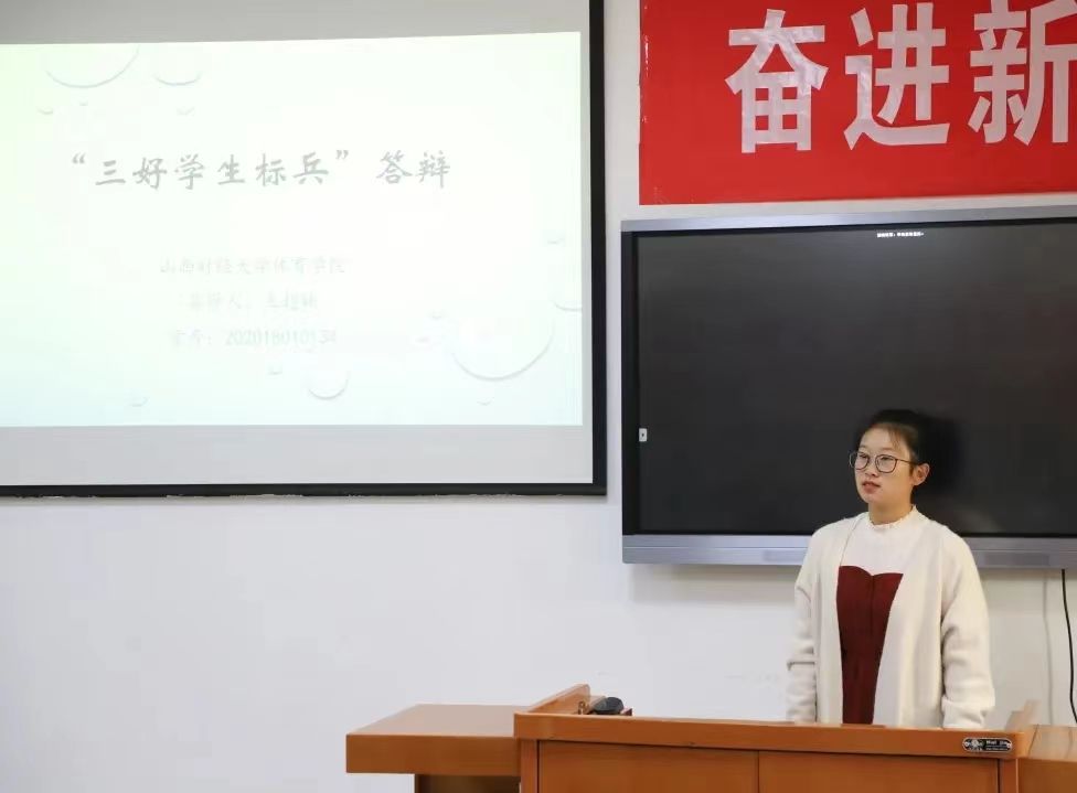 候选人演讲完毕,各位评委通过候选人的表现进行现场投票,选出三好学生标兵为李怡菲、吕宗润。