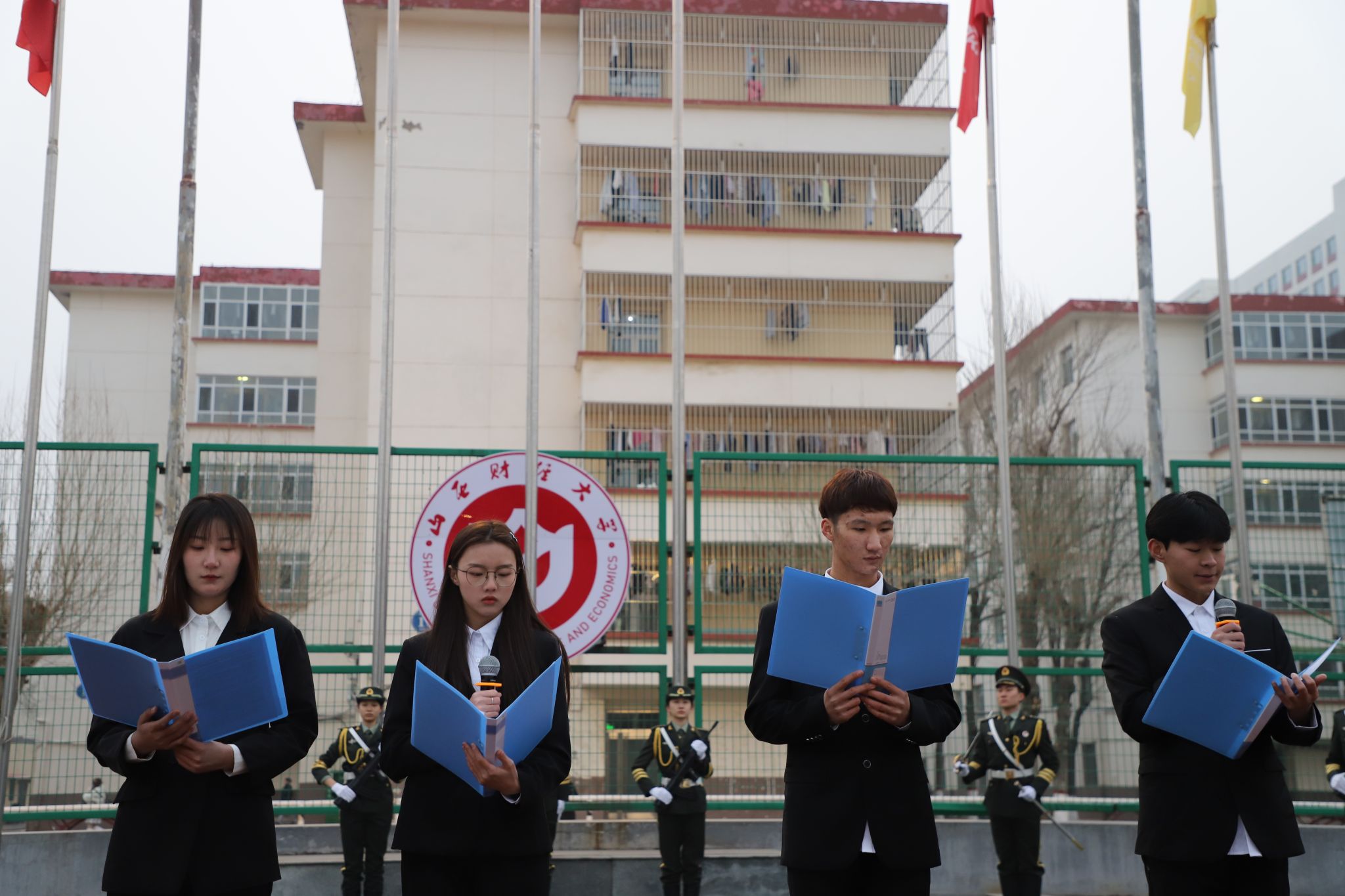 领导班子全体成员、辅导员和全体学生参加了升旗仪式。