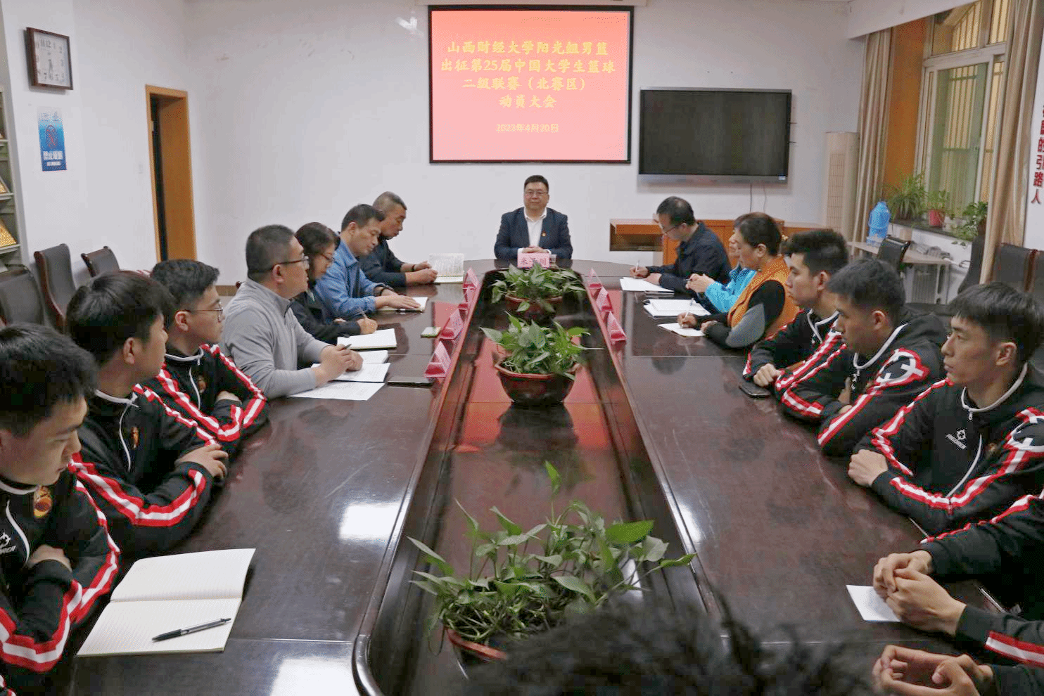 4月20日下午,途游斗地主下载 举行山西财经大学阳光组男篮出征第25届中国大学生篮球联赛(北赛区)动员会。党委常委、副校长、校体育运动委员会主任米子川出席并讲话。途游斗地主下载 领导班子、阳光组男篮教练员、全体运动员参加会议。会议由途游斗地主 党委书记李群生主持。