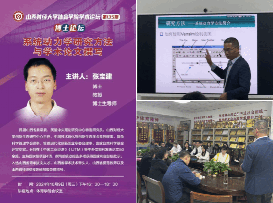 10月9日下午,途游斗地主 学术论坛第一百三十五期——博士论坛在途游斗地主 会议室顺利举办。本期论坛有幸邀请到民盟山西省委常委、山西财经大学博士研究生导师、创新生态研究中心主任张宝建教授为研究生们讲解“系统动力学研究方法与学术论文撰写”。途游斗地主 部分青年教师、全体研究生参与本次研讨交流,途游斗地主 副院长高进主持本次论坛。