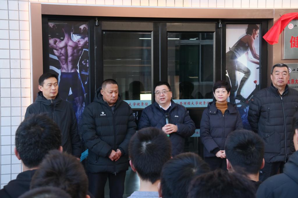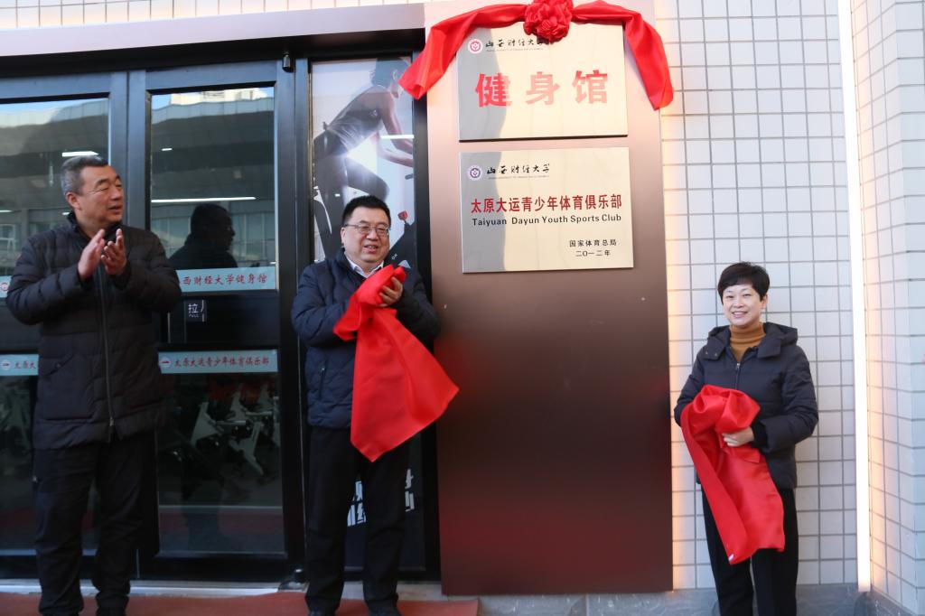 党委书记潘敏为山西财经大学健身馆揭牌。