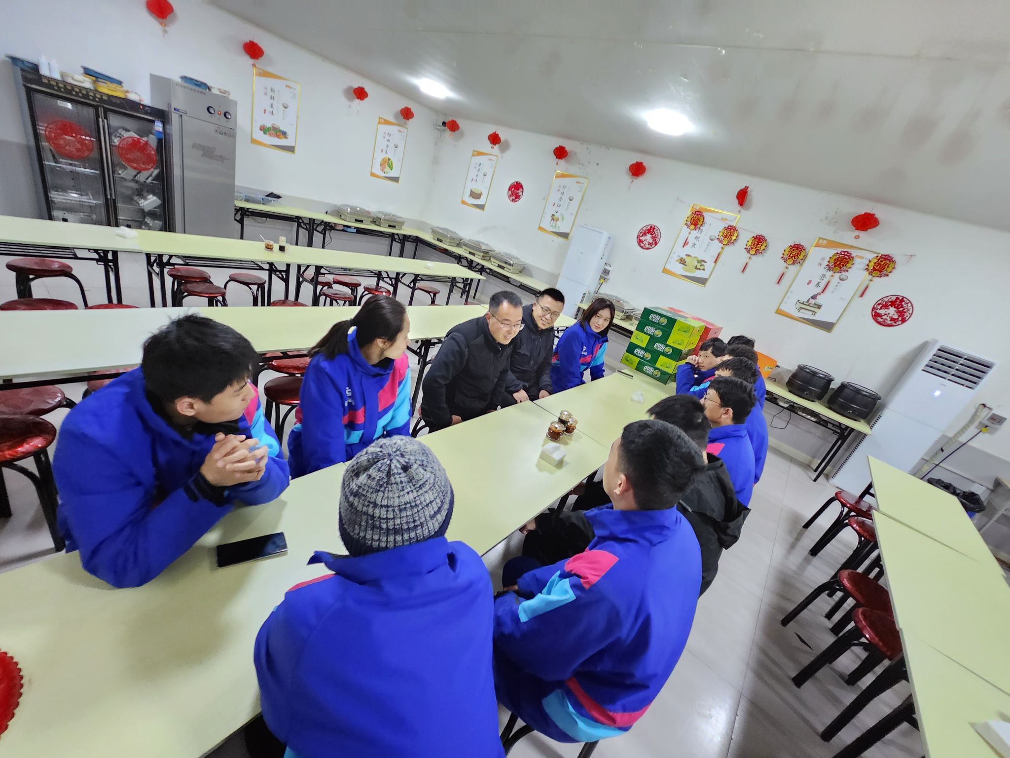 为实习生们赠送了慰问品,送上了新年祝福。晚餐后,与实习生一起座谈,畅聊实习收获和心得,重点询问了实习生住宿、吃饭、安全、工作、专业实践等情况;嘱咐大家时刻做好个人健康和安全防护,在实习期间认真完成好本职工作,做好实习日记和实习结束前的复盘总结。大家一致表示,公司提供了良好的食宿保障,通过实习提升了个人专业技能、锻炼了意志品质,加强了对专业理论知识的理解和运用能力,体会了从一名学生成长为职业教练的心路历程。
