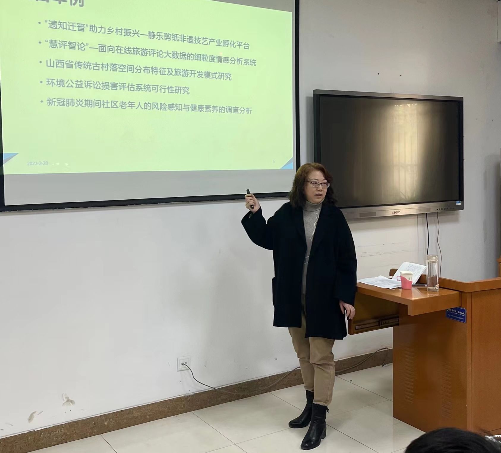 历年“双创”取得的好成绩鼓励参加辅导的同学们。王树宏教授结合专业及她指导学生“双创”的经验,重点对选题及申报书的撰写为同学们进行了耐心的讲解。她通过剖析优秀大创申报书案例,向大家分享了大创项目申报书撰写的思考逻辑、文字表达以及写作的重点、难点。
